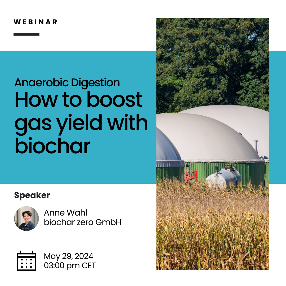 Biochar zero is offering a free webinar on the benefits of biochar-based additives in biogas plants on 29 May 2024, 3pm CET. The content is based on the findings